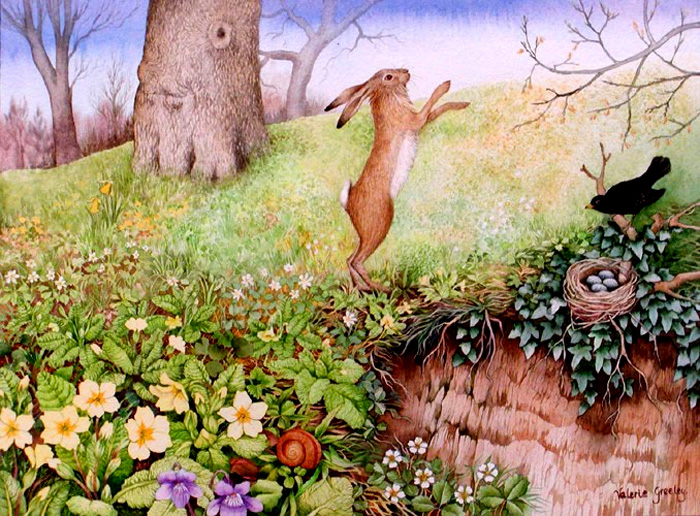 Le lièvre debout et le merle au nid
