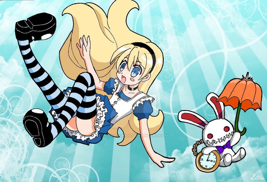 La chute d'Alice dans le terrier du Lapin blanc