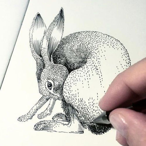 Esquisse de lièvre en cours de réalisation, avant peinture