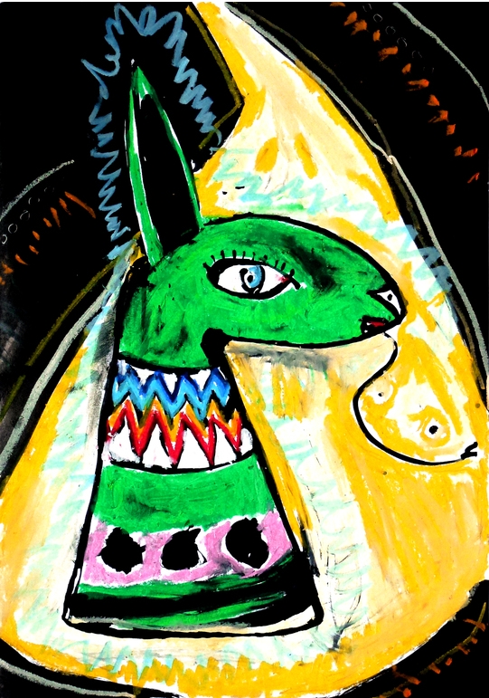 Pastel et encre sur papier, daté de 2013