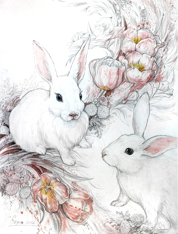 Lapins blancs de la série "tendresse"