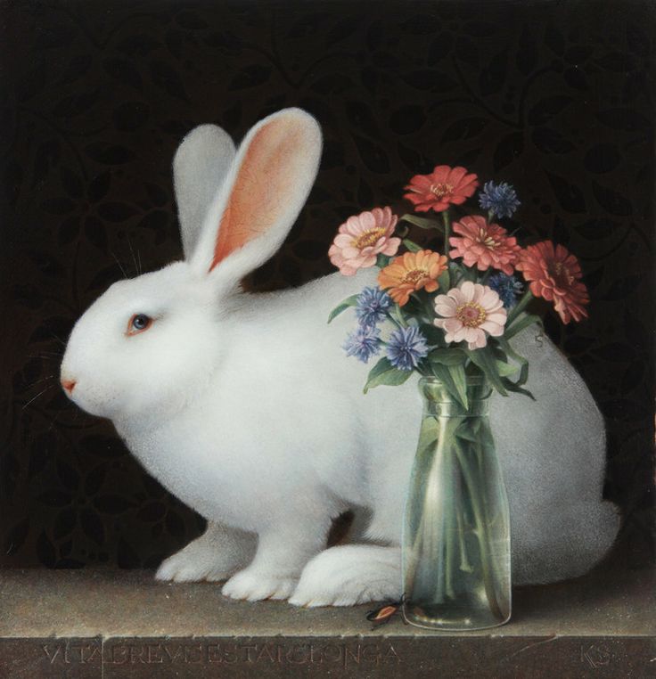 lapin blanc avec des zinias