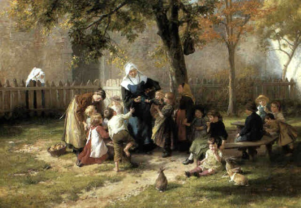 La cour de l'école (avec des lapins "domestiques")