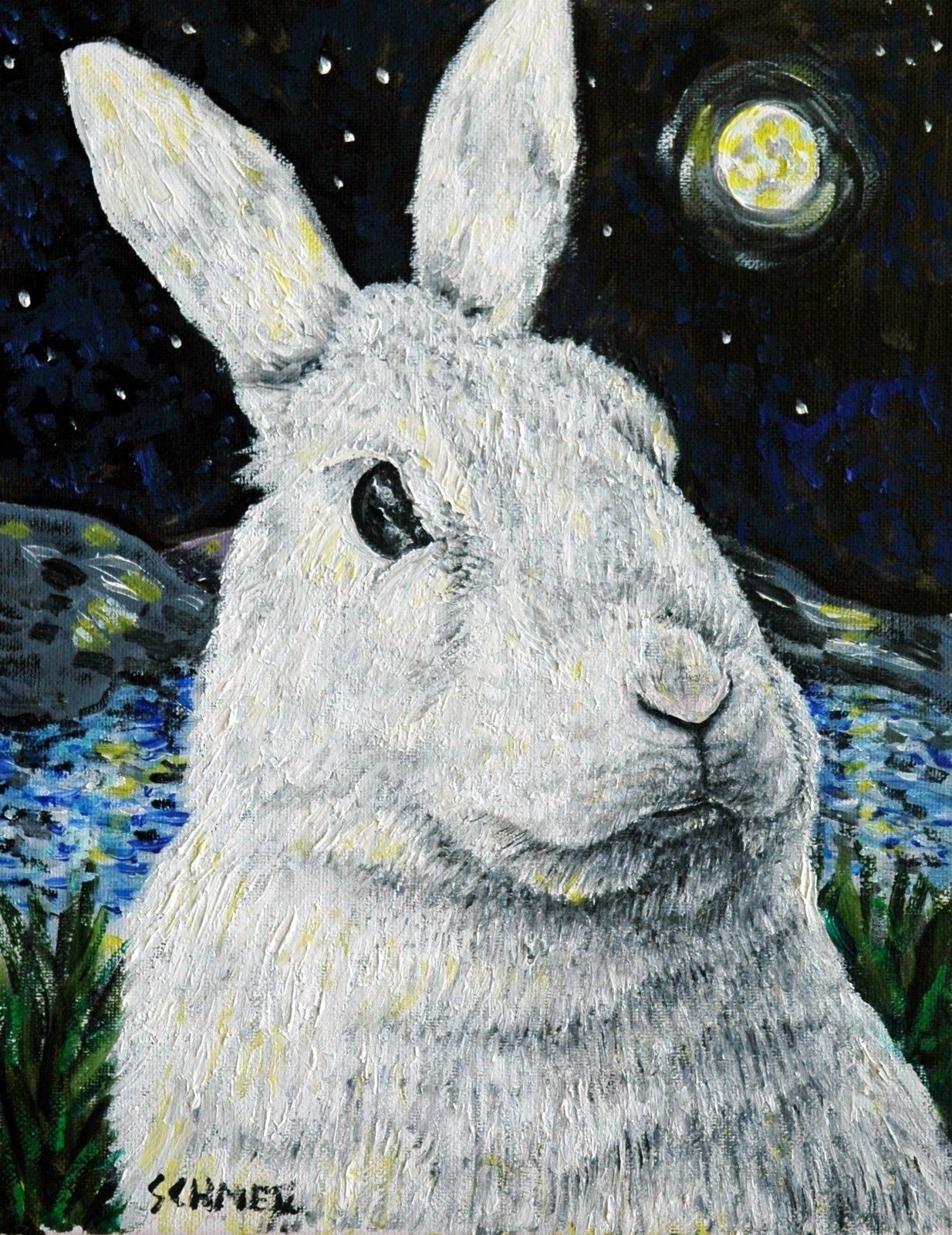 Lapin blanc la nuit