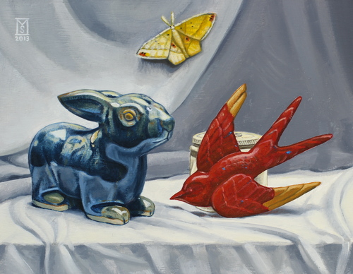 Lapin, hirondelle du Kansas et papillon de nuit