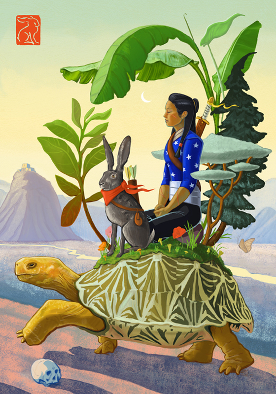 Vivi; le Lièvre et la Tortue Oasis traversent le désert sauvage